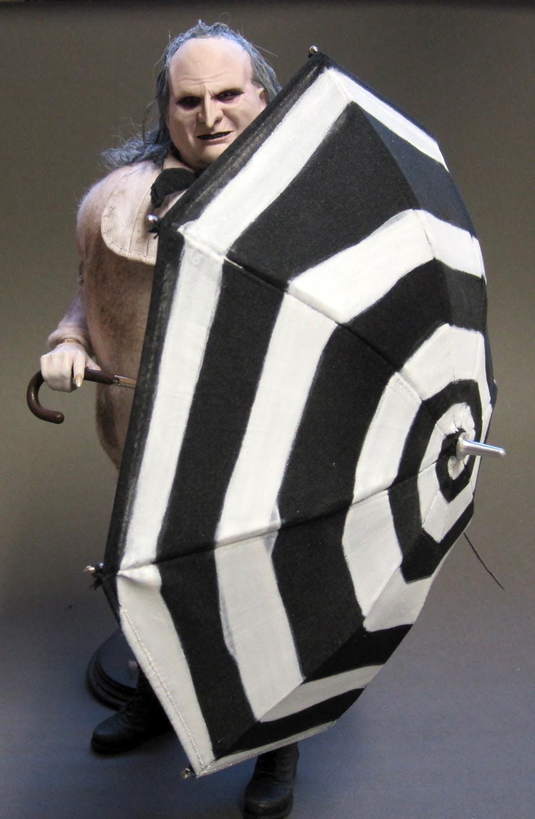Hello again its Greggo. Here is the finished Full Custom of Penguin from Tim Burtons Batman Returns. The head and accessories are sculpted by Sean Dabbs. Please note that the smiling head was painted by Nathan Eakins. It was a great head paint job so what better than to follow his fantastic work for the other Head. Anyway I hope you all enjoy the following pictures.....